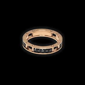 A ring with a refined and exclusive design, the rose gold structure, with a robust line, accommodates a pavè of precious black diamonds. A jewel with an important preciousness that is transformed into a modern creation thanks to an interplay of solids and voids, textures and shapes. Excellent workmanship is highlighted in every detail of this completely Made in Italy ring.
